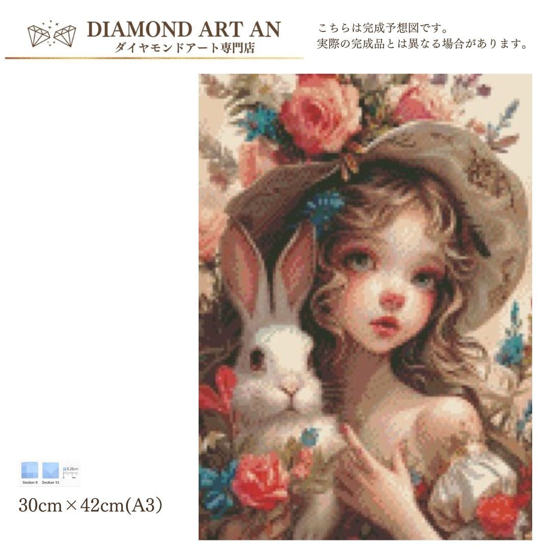 AM-547 ダイヤモンドアート キット うさぎ レトロ 少女 額縁印刷 A3 ハロウィン 季節 リハビリ脳トレ 集中力 知育 ビーズアート クロスステッチ 好きにも♪