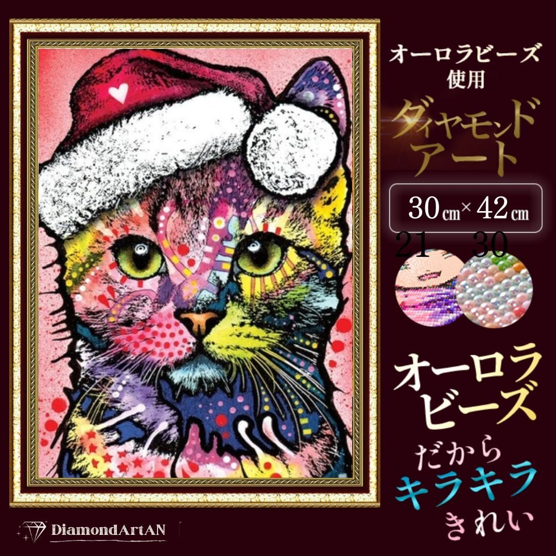【オーロラビーズ使用】AMAB-34 ダイヤモンドアート ネコ 黒猫 クリスマス