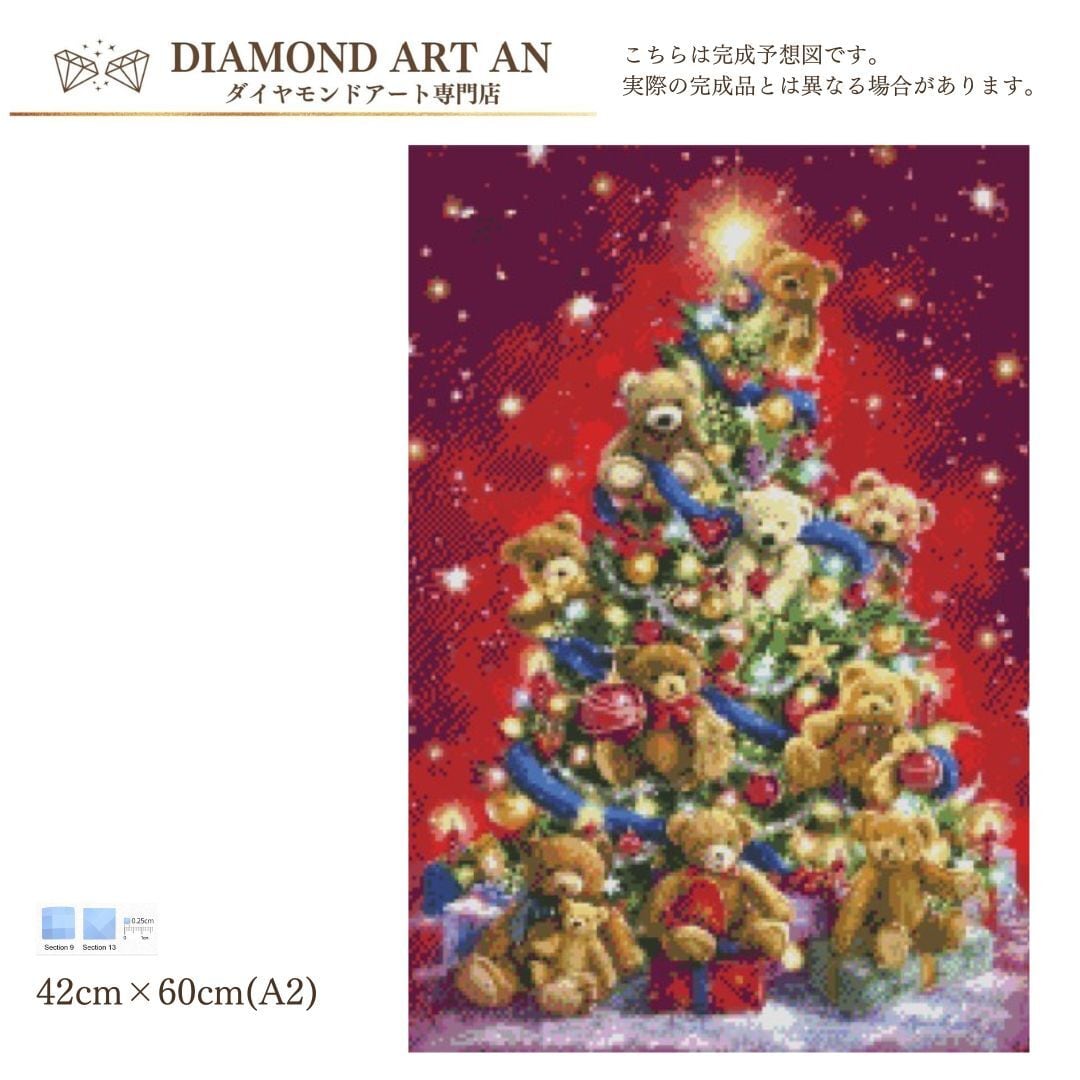 AM-550 A2サイズ ダイヤモンドアート キット 額縁印刷付き クリスマス クマツリー 赤