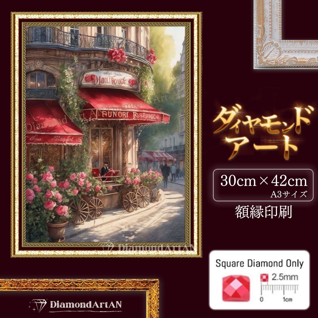 特殊なキャンバスに、あらかじめ額縁が印刷されている【額縁印刷】のダイヤモンドアートです。
