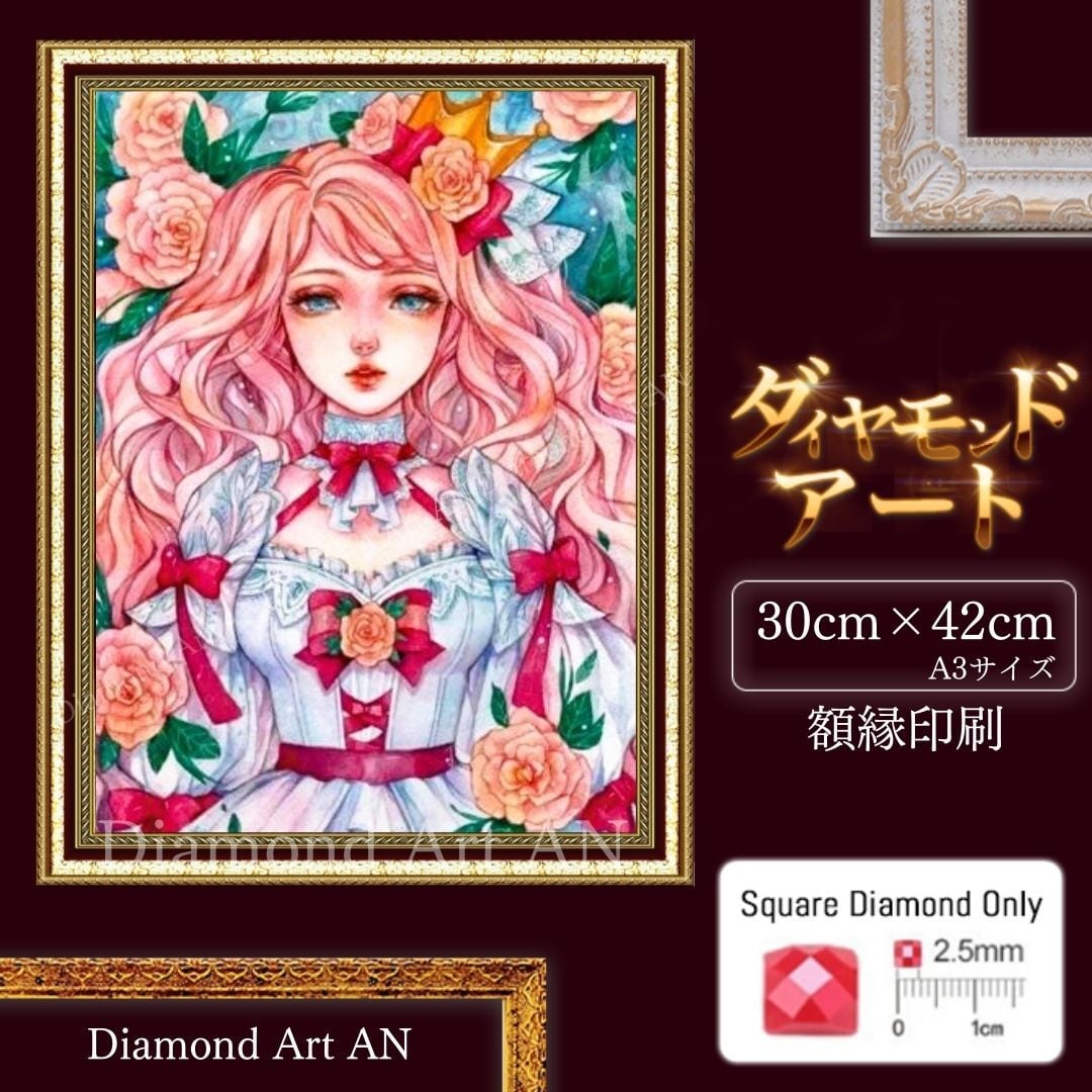 AM-164【額縁印刷】ダイヤモンドアート ビーズ 四角 美少女 A3
