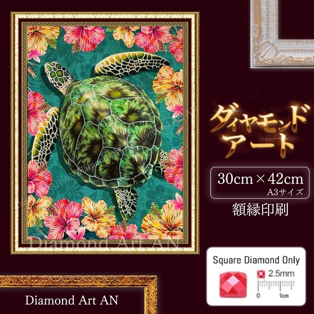 AM-193【額縁印刷】ダイヤモンドアート A3 スクエア ハワイ ホヌ 亀