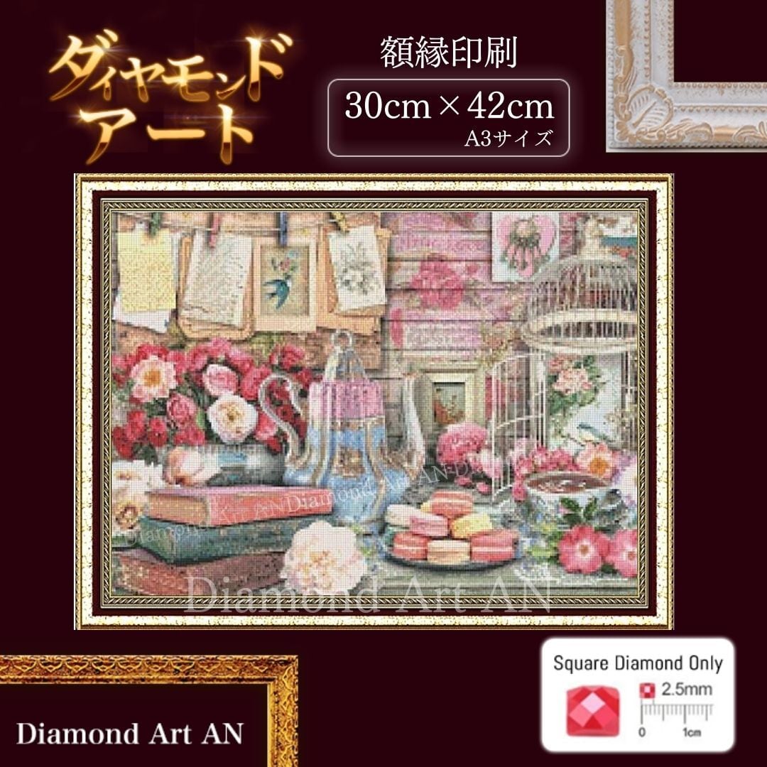 AM-99【額縁印刷】ダイヤモンドアート A3 スクエア 花 テーブル スクエア
