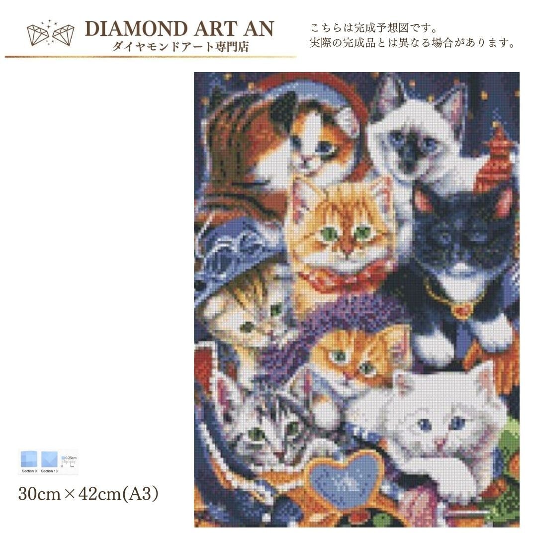 AM-186【額縁印刷】ダイヤモンドアート ねこ イラスト 刺しゅう クロスステッチ ビーズ パズル