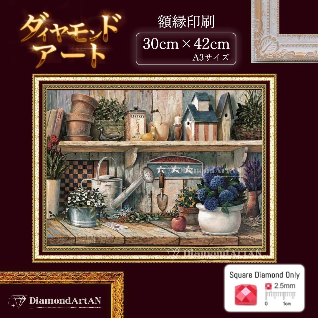 AM-231【額縁印刷】ダイヤモンドアート ビーズ 四角 花 ガーデニング レトロ セピア