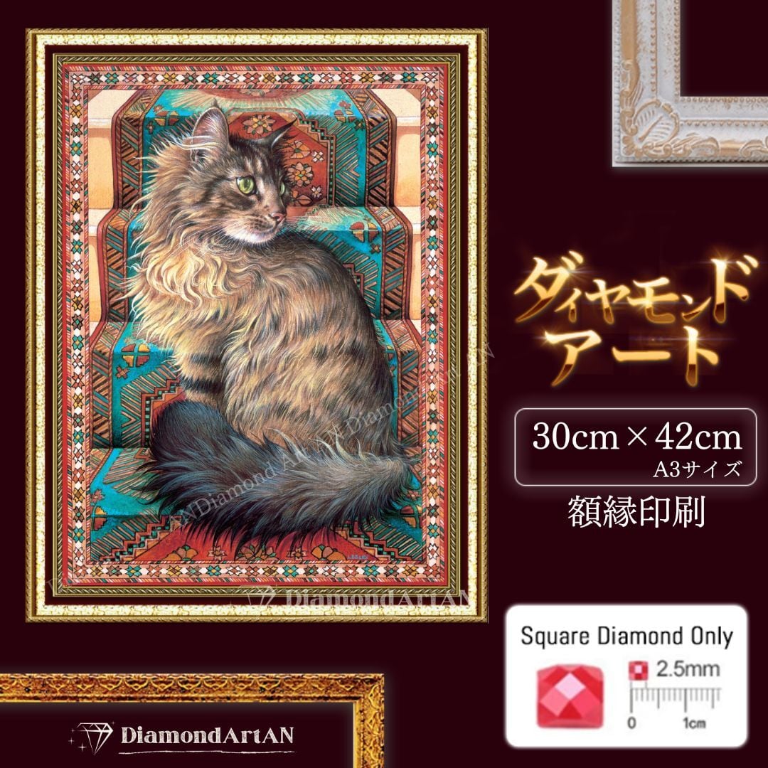 AM-329 ダイヤモンドアート キット 猫 ディナー 額縁印刷 A3 リハビリ脳トレ 集中力 知育 ビーズアート