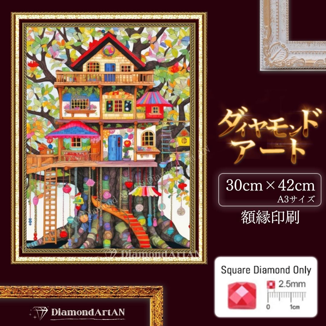 AM-354 ダイヤモンドアート キット ツリーハウス 家 絵画 額縁印刷 A3 リハビリ脳トレ 集中力 知育 ビーズアート クロスステッチ 好きにも♪