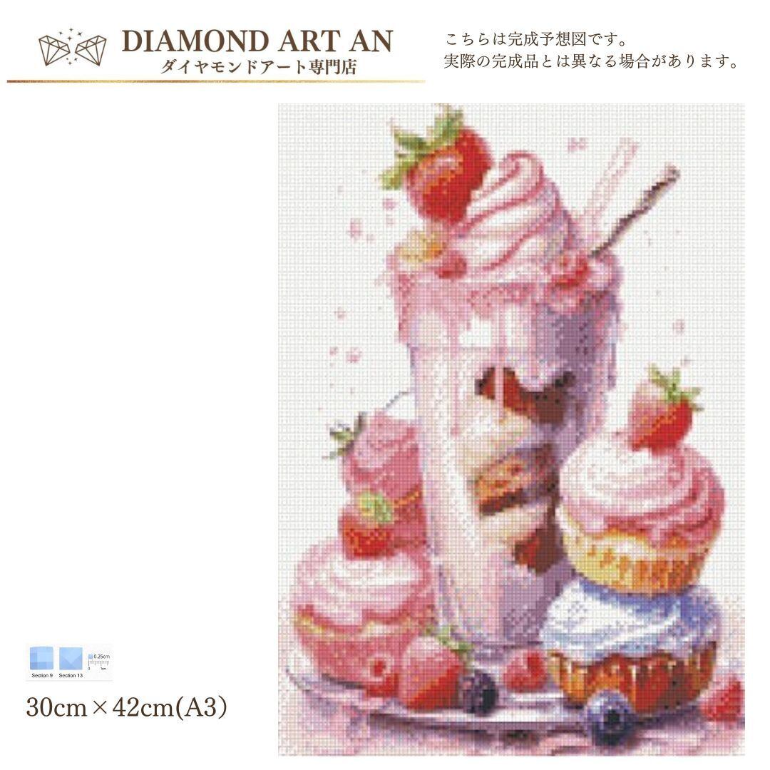 AM-393 ダイヤモンドアート キット ケーキ パフェ スイーツ 額縁印刷 A3 リハビリ脳トレ 集中力 知育 ビーズアート クロスステッチ 好きにも♪
