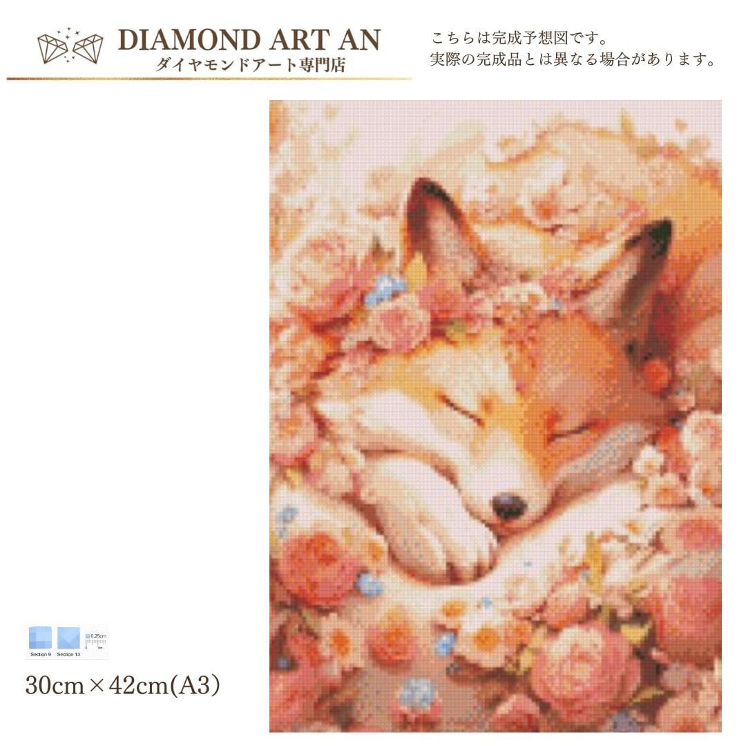 AM-465 ダイヤモンドアート キット 風景 額縁印刷 A3 キツネ 花 可愛い リハビリ脳トレ 集中力 知育 ビーズアート クロスステッチ 好きにも♪